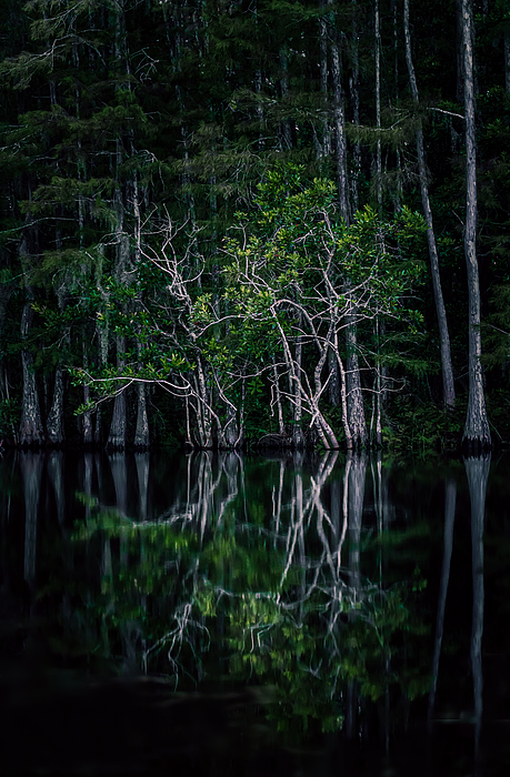 Shannon, Great image of these tall trees in the forest at night, with a great reflection on the water and a nice description about one tree being different then the others symbolizing that in this world these days it is alright to be different